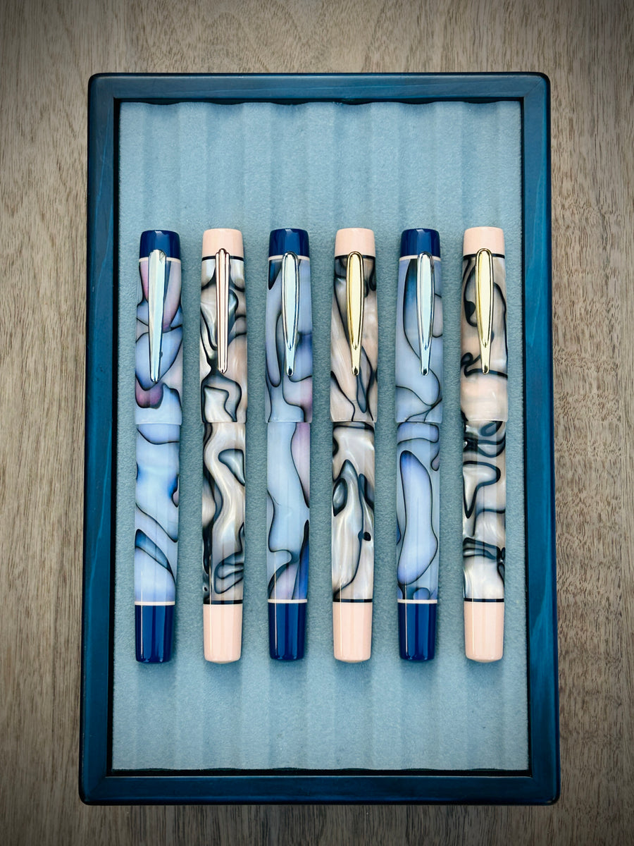 I use carefully chosen materials such as acrylic, acetate and stabilised wood. Each pen is individually made, a one-of-a-kind writing companion designed to be treasured for generations.