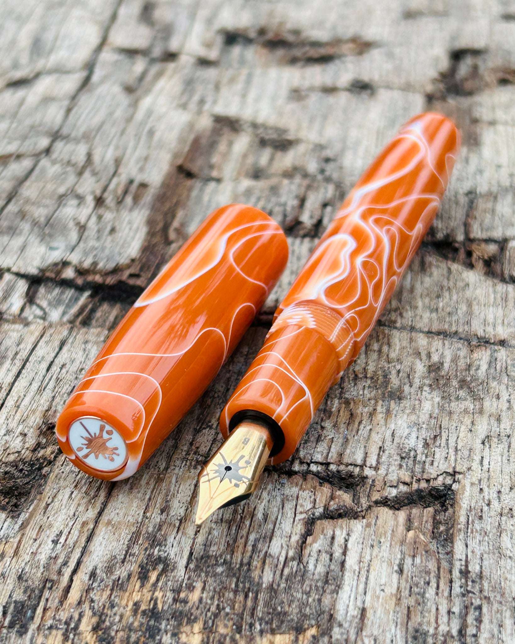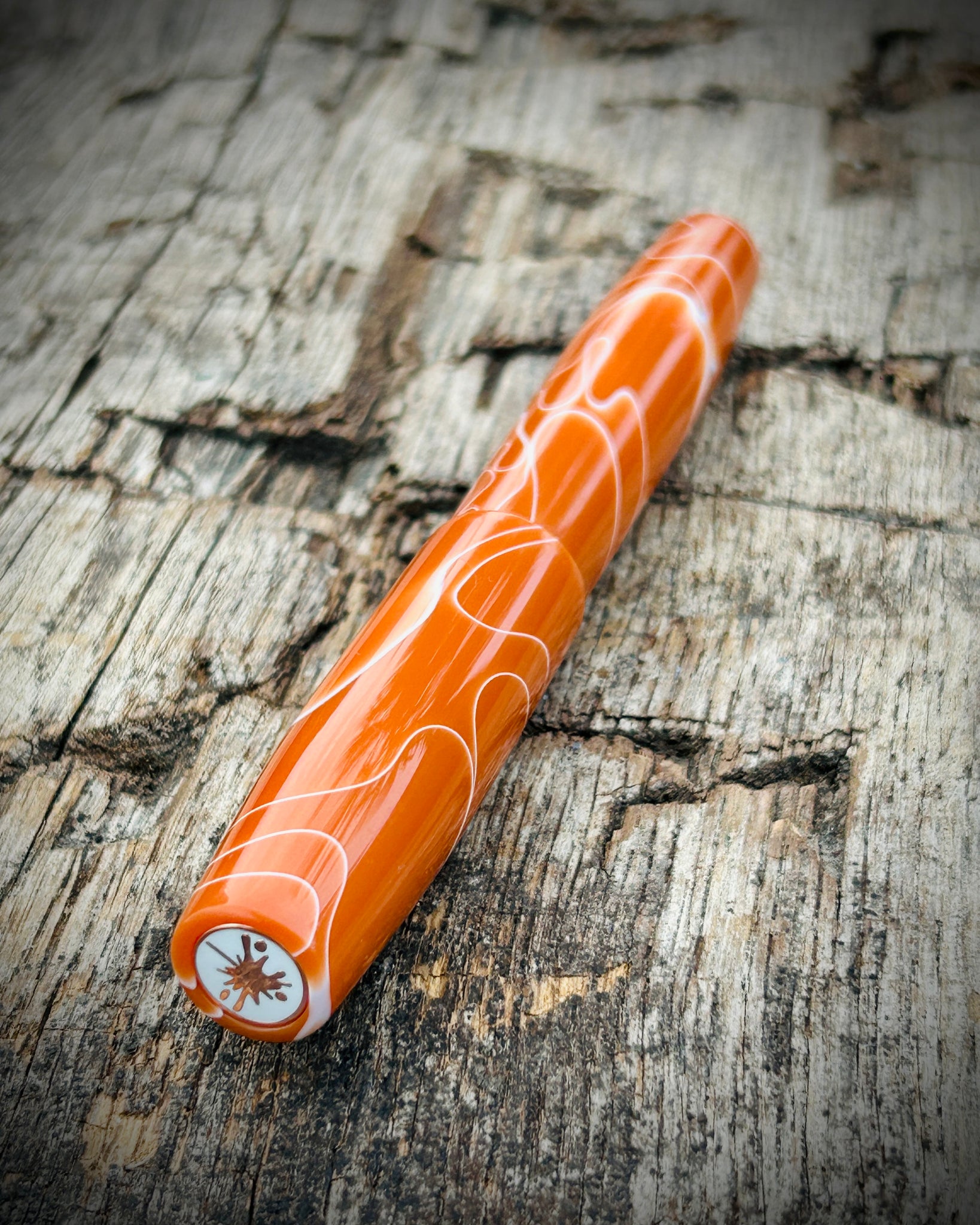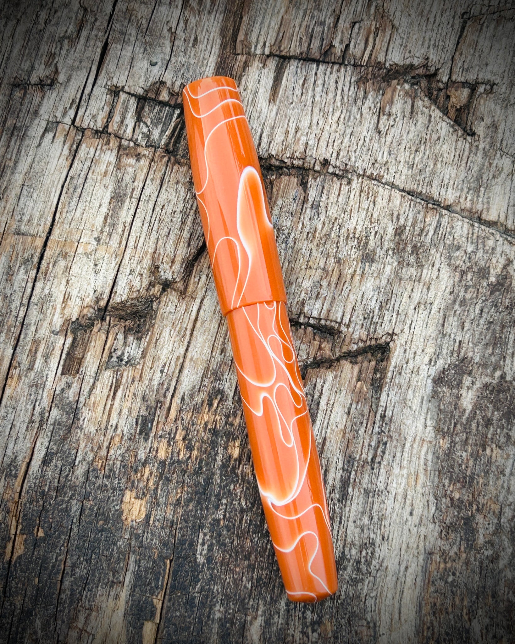 A Rascal model made from Burnt Saffron acrylic. This is the Origin version, the most streamlined and affordable style in the collection. With no accent rings it offers a minimalist design while maintaining the same high level craftsmanship and quality.